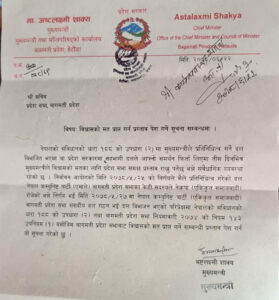 मुख्यमन्त्री शाक्यले विश्वासको मत लिने प्रस्ताव प्रदेशसभा सचिवालयमा दर्ता