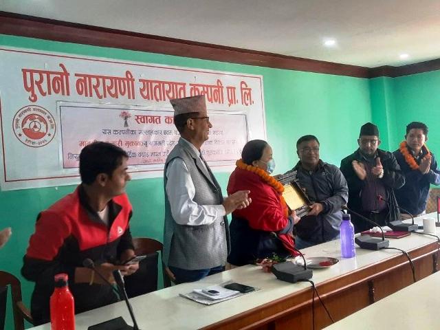 पुरानो नारायणी यातायात कम्पनी प्रालिद्वारा मन्त्री मोक्तानलाई स्वागत तथा सम्मान