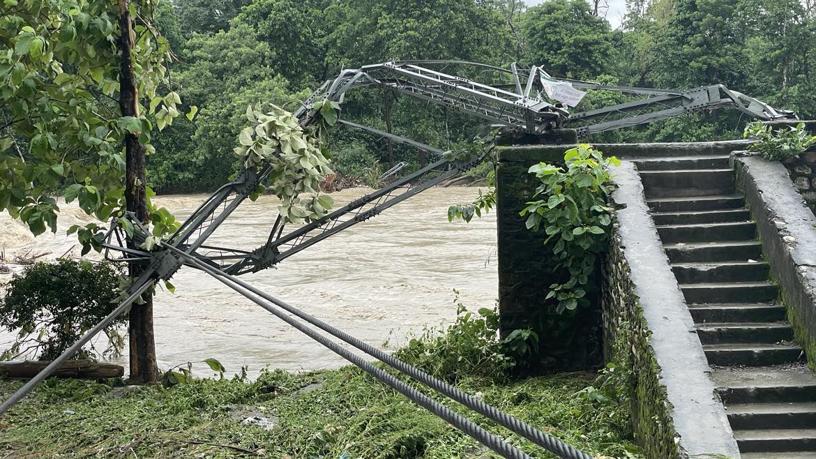 नारायणगढ–नगरवन जोड्ने झोलुङ्गे पुल बाढीले बगायो