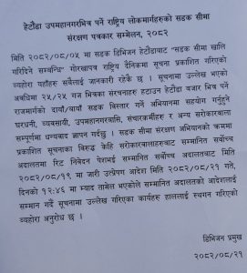 हेटौंडा सडक विस्तार शुक्रबारसम्मलाई रोकियो