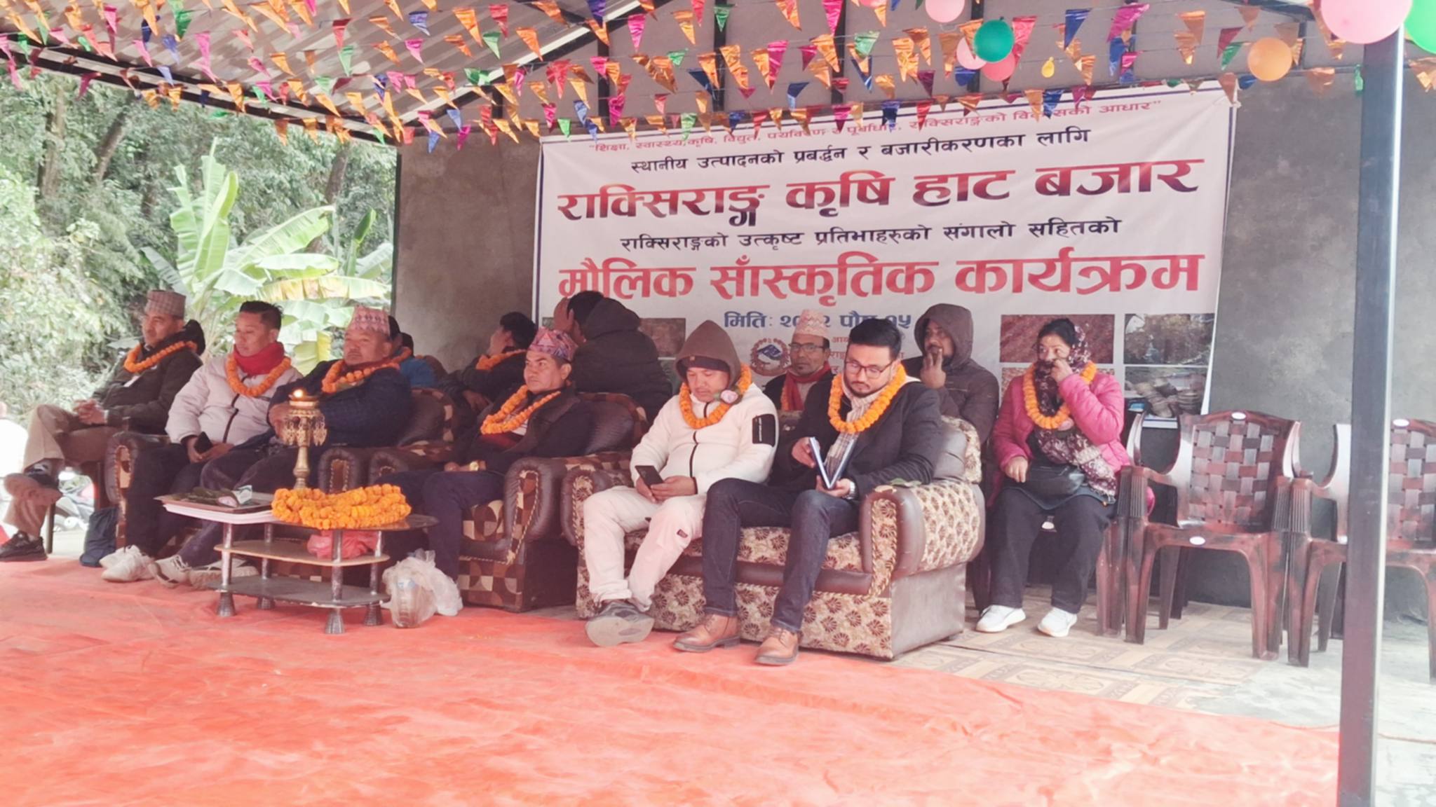 हिजोबाट पुनः शुरु भएको कृषि हाटबजारमा राक्सिराङ गाउँपालिका अध्यक्ष राजकुमार मल्लको अध्यक्षता जिसस समन्वय समितिका प्रमुख ललित घलान, ललित घलान, प्रदेशका पुर्व राज्यमन्त्री सन्त चेपाङ्ग, साल्ट ट्रेडिङ्गका मधुसुधन अधिकारी, अग्नी होत्र आश्रमको प्रमुख डा. सिताराम खनाल, अगुवा कृषक राम बहादुर बस्नेत, गाउँपालिका उपाध्यक्ष बनस्तम थिङ, प्रमुख प्रशासकीय अधिकृत सन्देश मास्के, लगायत वडाको जनप्रतिनिधिहरु, स्थानीय राजनैतिक दलका प्रतिनिधिहरुको आतिथ्यता रहेको थियो । कृषि हाट बजारमा साँस्कृतिक तर्फ तामाङ्ग, चेपाङ्ग, नेवारी लगायतको नृत्य प्रदर्शनको प्रस्तुति रहेको थियो ।
